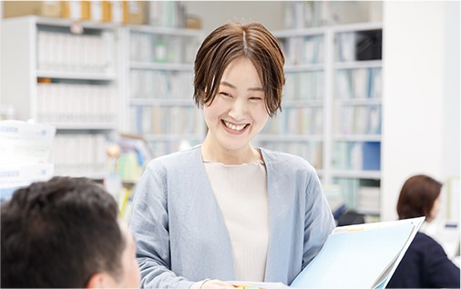 そして、入社してから「こんなはずではなかった」と思うことがないように、面接では事務所の現状もきちんとお話しさせていただきます。現在のスタッフ(正社員・パート)の9割以上が未経験入社。「自分にできるかな…」と不安な方でも、成長意欲やチャレンジ精神、何ごとにも柔軟に対応できる素直な気持ちがあれば大丈夫!あなたが成長できる環境を用意して、お待ちしています。